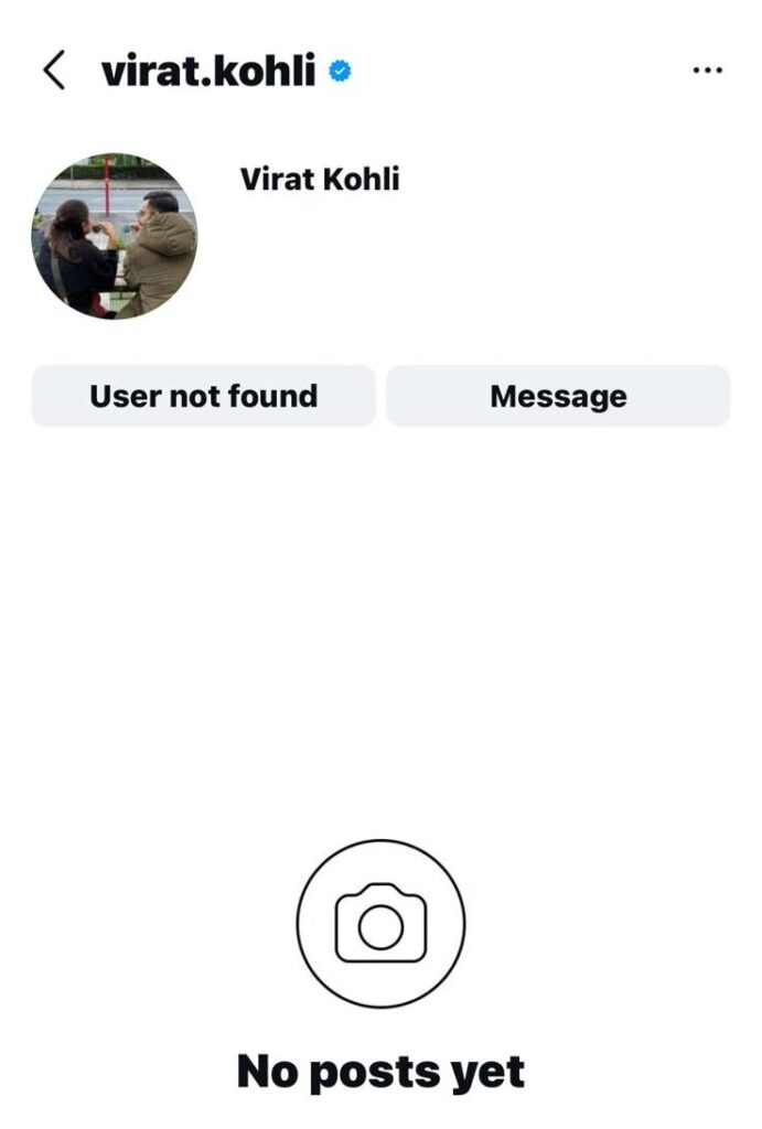 कोहली का प्रोफाइल सर्च करने पर यूज़र्स को ‘User not found’ या ‘Profile isn’t available’ जैसा मैसेज दिखाई देने लगा। देखते ही देखते यह खबर आग की तरह फैल गई और फैन्स के बीच यह सवाल उठने लगा कि आखिर विराट कोहली ने इंस्टाग्राम अकाउंट डिलीट कर दिया है, डिएक्टिवेट किया है या फिर अकाउंट हैक हो गया है?